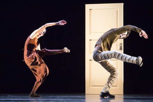 The evening began dramatically with Little mortal jump by Choreographer Alejandro Cerrudo. If contemporary dance ever had a strong opening, this was it. The seamless integration of flowing, upbeat music, lighting design (Michael Korsch), set design (Alejandro Cerrudo), and costume design (Branimira Ivanova) transported audiences into a dream-like fantasy where the light and darkness themselves become characters in a choreographed daydream of romance and intimacy. With four giant black squares that the dancers would spin to selectively reveal and hide the dancers, the piece was captivating and mysterious from the very beginning, and the perfect integration of stagecraft and dance. The opening sequence, when a single dancer leaped from the stage and, after a flash of light, disappeared into the orchestra pit, is the perfect example of this—which left audience members dumbfounded in a collective, audible gasp.