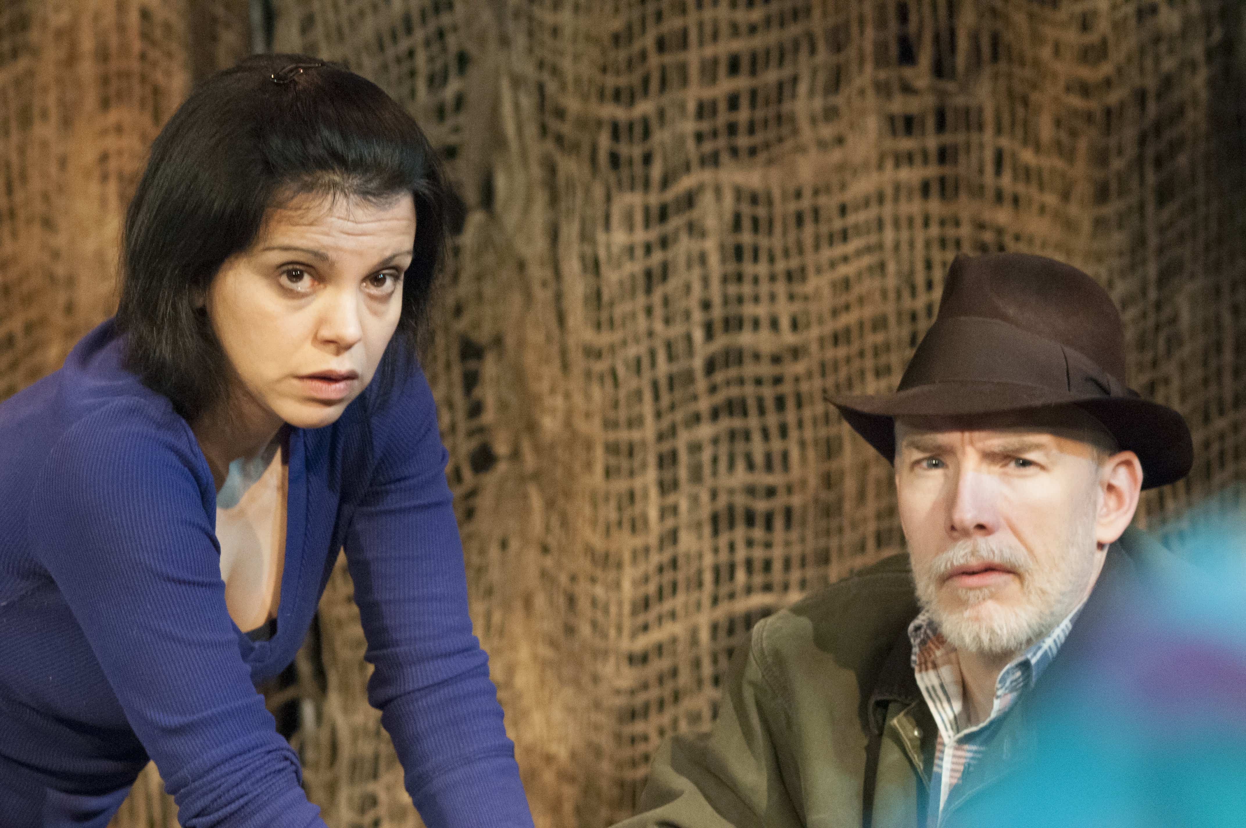 A great strength of the production is the relationship drawn between Diana and Duck, and specifically the engaging performances by Achrati and Casey in roles so well suited you might suspect Currin wrote her play with these actors in mind. Achrati’s “Diana” is a dynamic and commanding storyteller, and she makes seamless transitions between her various flashback ages, ranging from early childhood to present. Casey brilliantly portrays a stark contrast between the vibrant and crass pre-Parkinsons “Duck,” and the hauntingly realistic vegetative manifestation of the disease. Karen Lange also makes a delightful foil as the sassy nurse “Killer.” The scenes between them, set in a world of Diane’s memory, feel personal and evoke a strong emotional connection.