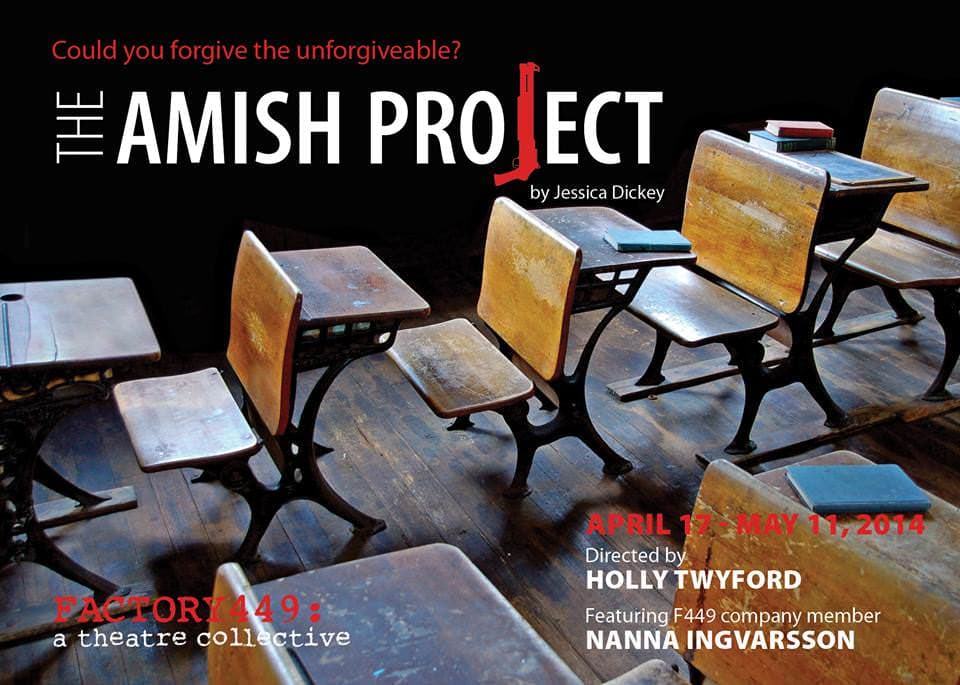 The Amish Project plays through May 11, 2014 at Factory 449 performing at Anacostia Arts Center – 1231 Good Hope Road, SE, in Washington, DC. Performances are on Thursdays through Saturdays at 8 pm, and Sundays at 3 pm. Tickets can be purchased online. For more information call (202) 355-9449.