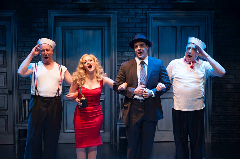 Comparatively light fare, Cloak and Dagger is a stew of film noir, burlesque, operetta, Looney Tunes, with winking nods to musicals from Jerry Herman’s Mame and La Cage aux Folles to backstage hits like Curtains; Kiss Me, Kate; 42nd Street; and a thinly veiled Titanic parody. Whew! (In a musical punch line, the opening strains of the first number, The Worst of Times, borrow from The Best of Times, Herman’s La Cage anthem, while the secondsong transforms Dickensian-like — or is that Dixonian-like? — into a titular echo.) About those orchestrations, created by 20-something Jordon Ross Weinhold on his Apple computer using Dixon’s handwritten scrawlings: pretty peppy! But Musical Director Jenny Cartney and her pit crew keep up with rollicking grace.
