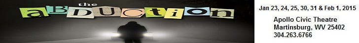 The Abduction plays through February 1, 2015 at Apollo Civic Theatre – 128 East Martin Street, in Martinsburg, West Virginia. For tickets, call the box office at (304) 263-6766, or purchase them at the door