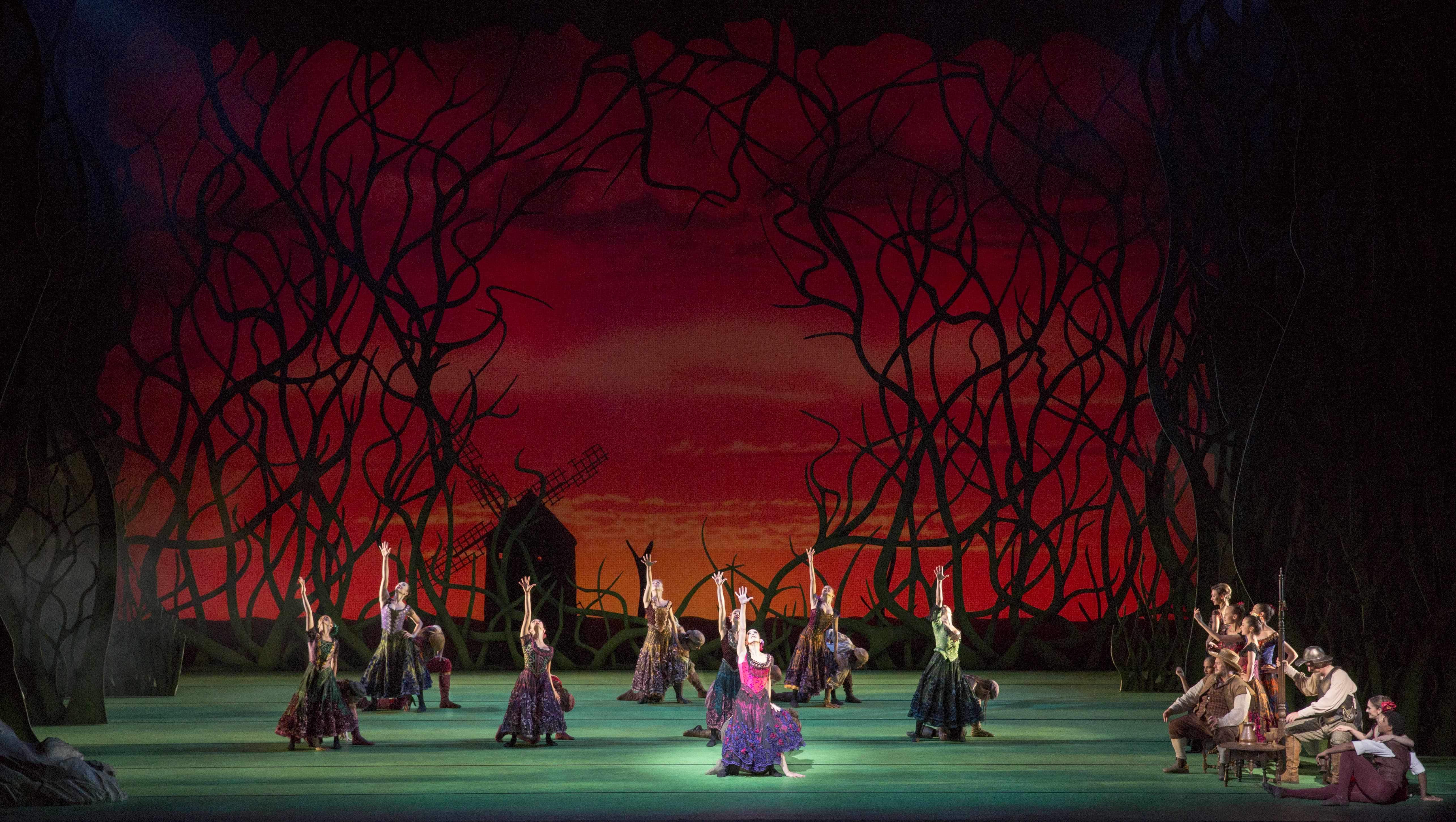 And so it does. It is hard to imagine anyone failing to enjoy this ballet with its blend of comedy and romance, its Spanish-flavored dances and flashy, bravura solos. The music by Ludwig Minkus, arranged and orchestrated by Martin Yates, adds to the magic – we were humming the ballet score on the ride home. Kudos, too, to Set Designer Tim Hatley who created a windmill that increased in size as it moved side to side downstage.