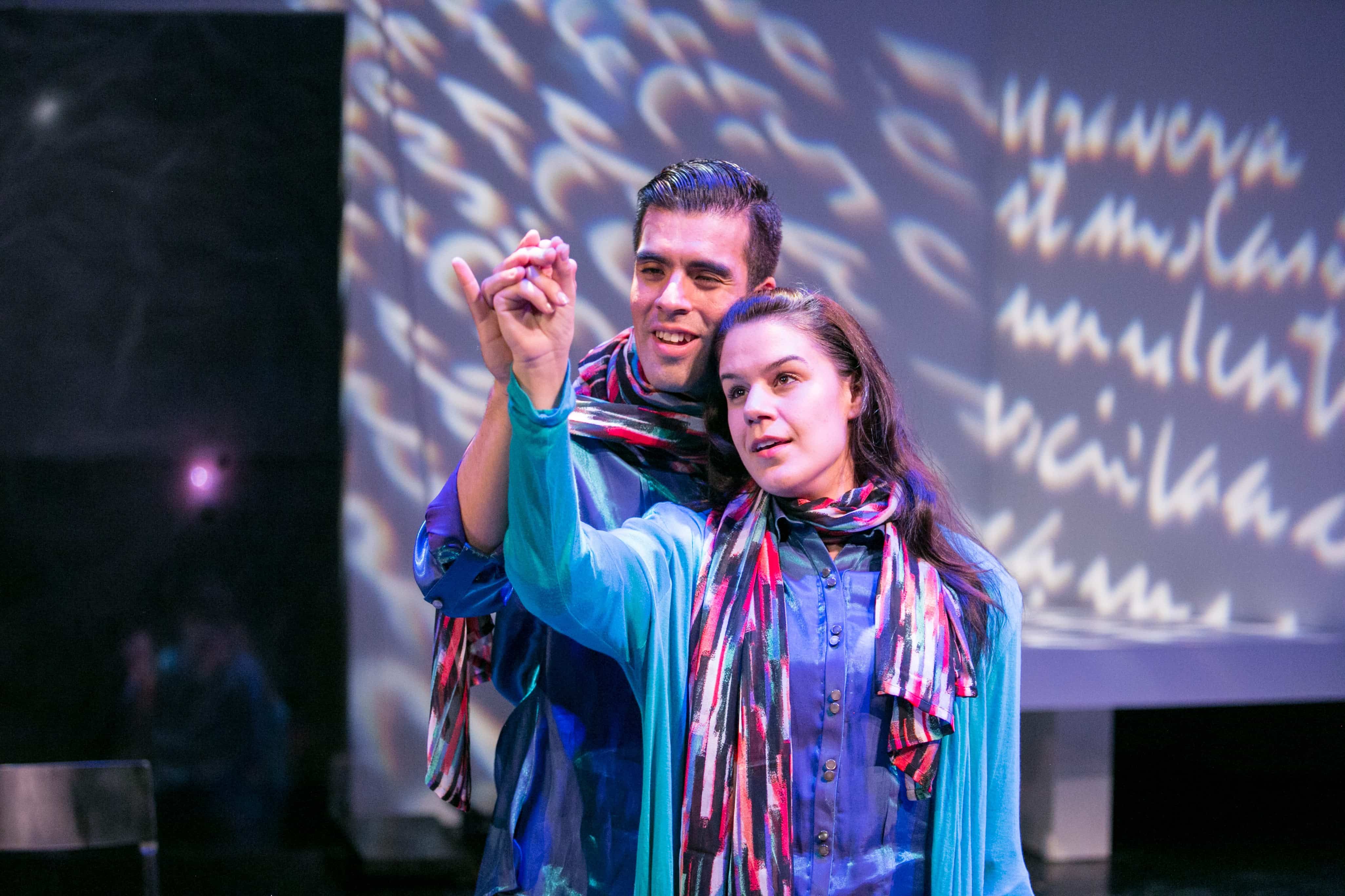 Last night in a talkback after the show with the cast and creative team, I asked how—as actors accustomed to playing opposite another actor in the role of an “opposite” sex—the two had achieved such authenticity of unanimity. Director Octavio Cardenas answered by relating what he called “an accident in rehearsal”: One day, he said, Orozco and Cutright both forgot their blocking in a scene, and for a telling time they looked intently to each other as if to find in the other the memory they each lacked. “That’s it,” Cardenas said he told them (I’m paraphrasing); “you just found who you are to each other on stage.”