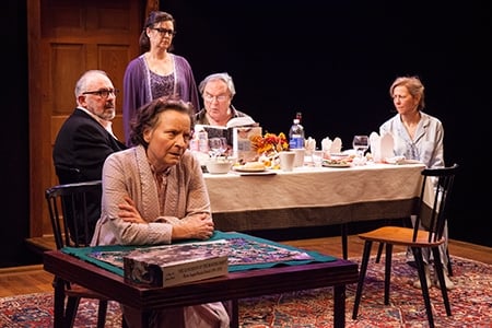 If action, dramatic or heroic, is your idea of the “theatrical,” then Regular Singing is not for you. The play has the same naturalistic, slice-of-life style save the epilogue as the other three plays in the cycle, the same homogeneous, liberal family of three sisters and a brother and an uncle, same rituals of eating and drinking and talking, same fine cast of actors; but by play #four and the oft-repeated theme of death and its knock, the characters are no longer resistant to the call; they are merely looking for ways to cope.