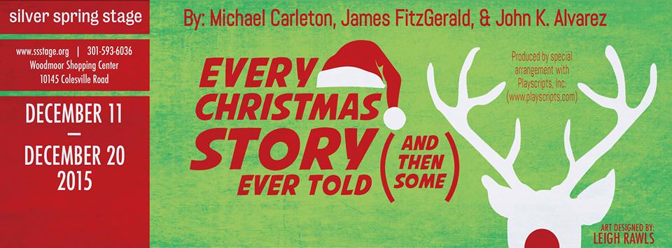 Silver Spring Stage presents Every Christmas Story Ever Told (And Then Some) by Michael Carleton, James Fitzgerald, and John K. Alvarez, directed by Susan Brall and produced by Jim Robertson, a non-traditional holiday show that is a hilarious spoof of pretty much every Christmas show from traditional to contemporary. Every Christmas Story Ever Told (And Then Some) will perform weekends December 11 to 20, 2015.