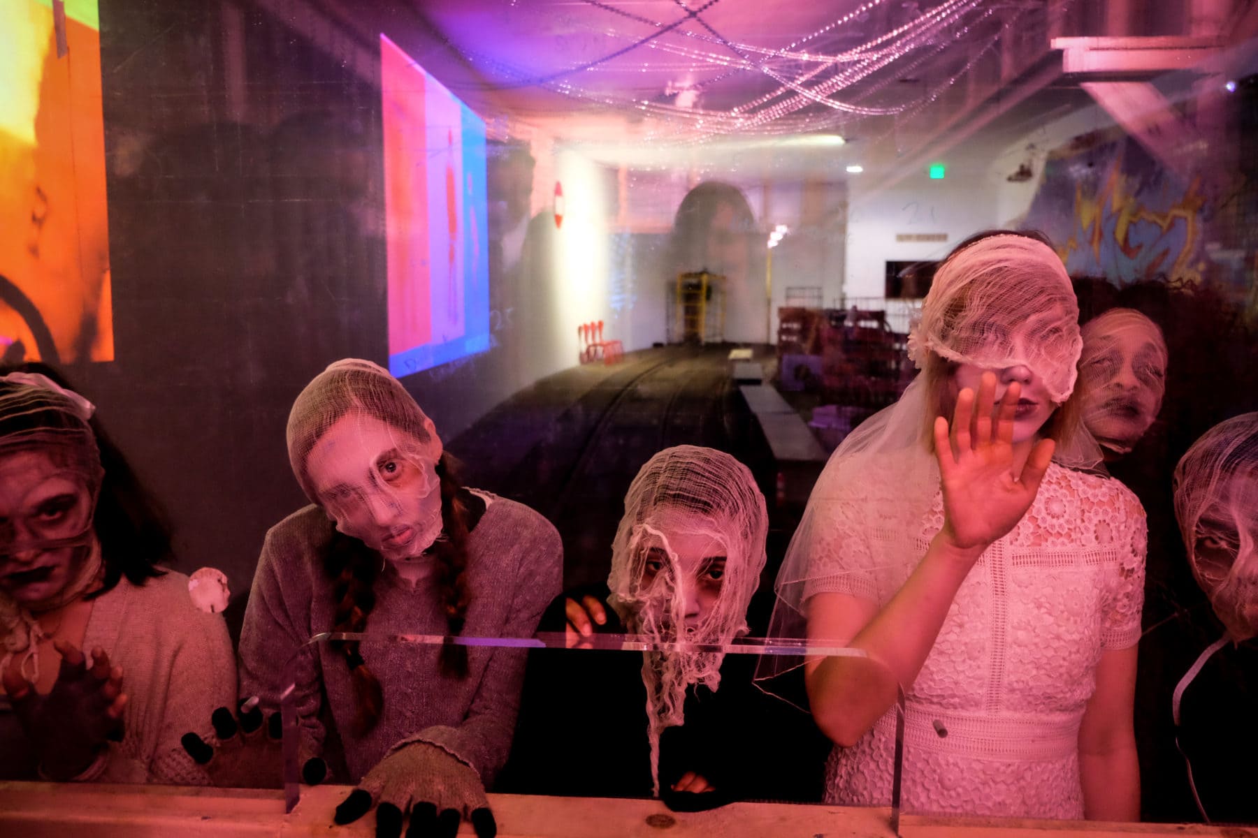 At the beginning of the experience, the audience is split in half. Then the TBD cast takes you on one of two paths. There is the group of the living, making their way through the end of life and transitioning into death. The second group, which is the one I was with, starts in the underworld and takes the journey of a soul preparing to be reborn into the land of the living.
