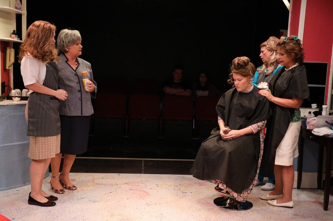In Spotlighters’ current production of Steel Magnolias, its four-poster stage is transformed into a rural Louisiana beauty shop inhabited by a group of six southern women. They range in status from the late mayor’s widow to an abandoned bride whose runaway husband is a fugitive from the law. That these characters are partially defined by the men in and out of their lives isn’t all that surprising, given the age of the play; it also provides a context in which the audience is invited to celebrate how strong these ladies all are. If the setup sounds potentially troublesome for a community theater production in 2019, it is; but Spots does a laudable job here.