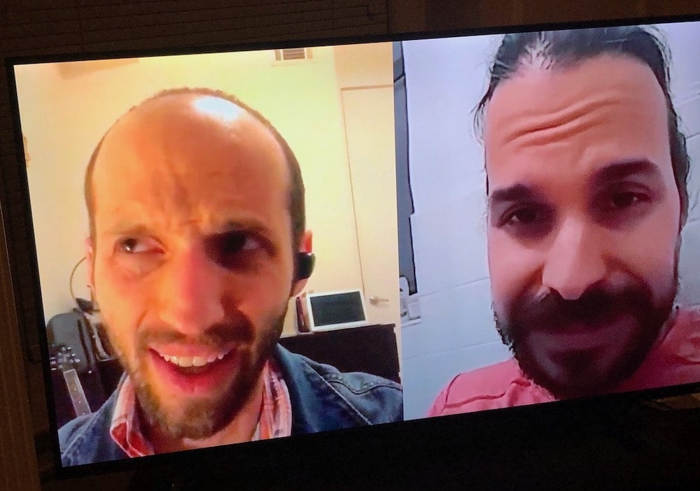 The answer is: sort of. Borders was obviously written to be performed in a live theater setting. In fact Dirty Laundry Theatre has done the play onstage already, in the 2019 New York Summer Theatre Festival, where it received a Best Play nomination. The company planned to remount the play for a run this year April through June and had begun previews when COVID-19 hit and the show had to shut down. Rather than postpone, or call the whole thing off, the company created an ingenious virtual adaptation to be livestreamed in real time directly from the actors’ homes, with no pre-shot footage except in transitions between scenes.
