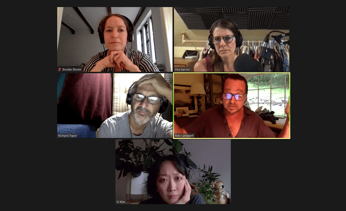 The radio play features compelling deliveries of the figures, their attitudes, and the playwright’s descriptive, articulate, and often elevated poetic language by the excellent cast of Mia Barron, Brooke Bloom, Phillip James Brannon, Bill Camp, Rob Campbell, Raúl Esparza, Sue Jean Kim, Jenny Jules, Bruce McKenzie, Joe Morton, Jeremy Shamos, and Rich Topol. Each voice is distinctive and recognizable, and every emotion rings true, as they recognize that there is “no calm steady way to discuss this.”