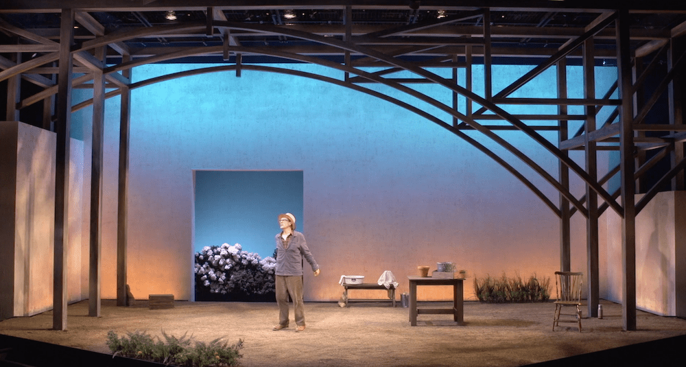 Nelson delivers a powerhouse performance in this portrayal of the anguished protective father, tending his garden with devotion while ruminating and reflecting on God’s will. His mannerisms and expressions bring poignancy and life to the characters he portrays. There’s a depth to his soul that comes through the passages. Watching him up close as he works through life’s twists and turns is a masterclass. He’s also got the flexibility to kneel in the garden for long stretches and crouch on a chair to get his points across, nicely directed by Noah Himmelstein.
