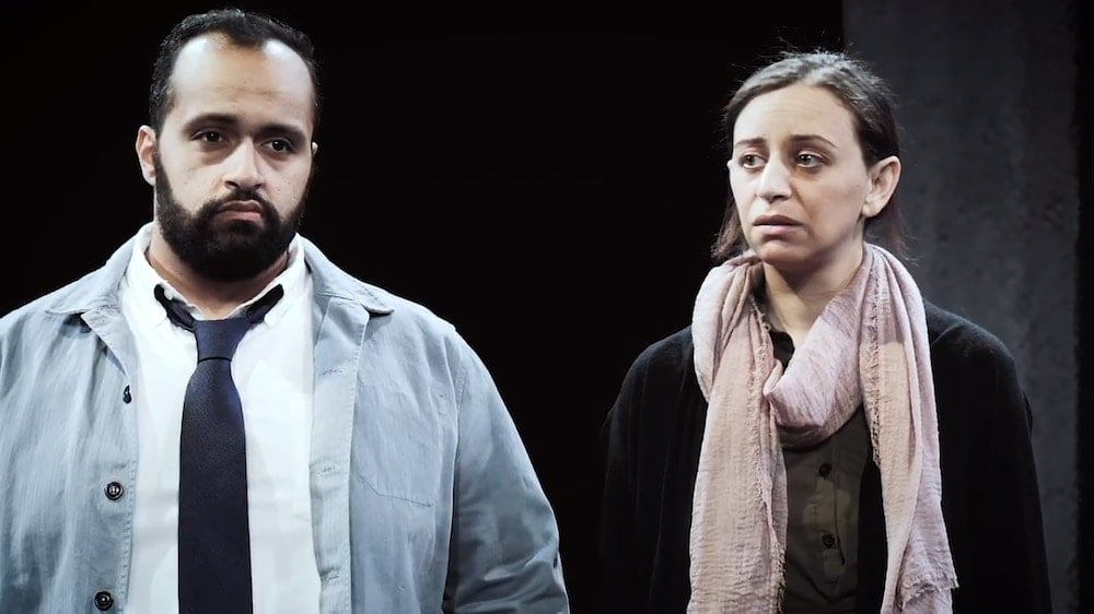 In “Craving Mangoes,” the second episode of Keffiyeh: Made in China, Dalia Taha ushers us into a parent’s worst nightmare — identifying a son at the local morgue. A nameless Palestinian couple sits outside the vault, unable to step inside. As long as they delay, there is still hope. The mangled corpse, now missing an arm, could have been someone else. In a staccato, 12-minute dialogue between husband and wife, Taha deftly sketches the sadness, hope, and poignancy of what was likely their son’s last day of life. The boy was no doubt spirited. His imperfections and academic failings were cloaked by a mother who gave the child his father’s clothes, indulged his taste for luscious fruits, and perhaps chose to overlook his misbehavior. Maybe he did, or did not, throw stones. Ahmad Kamal and Dina Soltan inhabit the couple’s anguish brilliantly as each recalls the child and goads the other to enter the vault. The searing intimacy of Taha’s short play, well-directed by Adam M. Kassim, demonstrates once again the agonizing cost of ongoing strife in the Middle East.