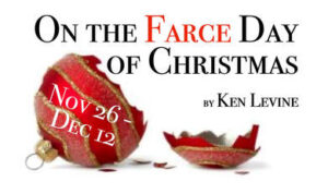 On the Farce Day of Christmas plays through December 12, 2021, presented by Best Medicine Rep performing at Lakeforest Mall, 701 Russell Avenue, Gaithersburg, MD. Performances are every Friday and Saturday at 7 pm, and every Saturday and Sunday at 2:30 pm. Parking is at the Yellow Sun entrance to the mall. Tickets are available exclusively online and must be purchased in advance ($25 general admission, $23 seniors, $20 groups of 10+).