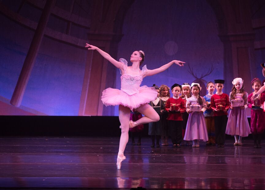 The performance is enhanced with painted scrims and backdrops (by resident set designer Gillian Bradshaw-Smith) and lavish costumes (by resident costume designer Rita B. Watson) that evoke the era, style, and locales of Olde New York, and lighting that captures the progression of the hours, both outside and indoors, on Christmas Eve (by resident lighting designer David Grill). At the matinee I attended, there was a technical glitch in the sound system’s pre-recorded music that caused a brief delay, but the intrepid artists completed the scene and returned to the stage once it was remedied. It was another important lesson for the young ballet students – the show must go on, and it did.